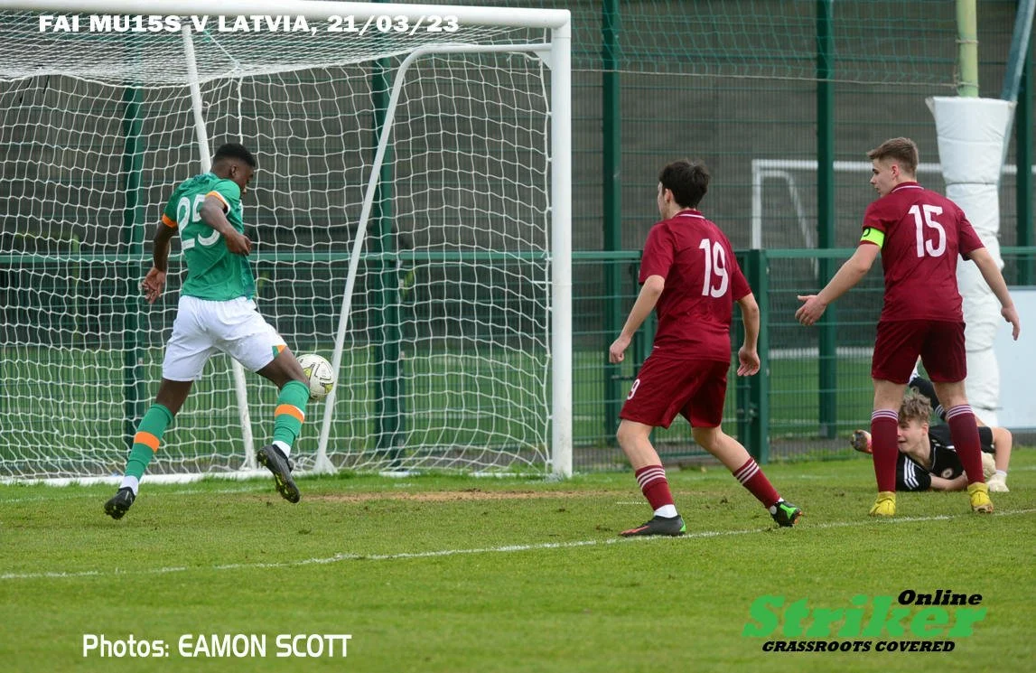 Ireland had an early chance to open the scoring as Jaden Umeh opted to play a short free kick to Ade Solanke with his effort blocked down by Bukovskis. Umeh was to go close again as his free kick was tipped over by Mihelsons in the Latvian goal. Ireland was to make the breakthrough in 15 minutes as Akinrintayo was on hand to convert a Ramon Martos cross from the right. Ireland would continue to press with both Goodness Ogbonna and Umeh going close however both were not able to convert their chances.